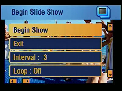 A slide show interval time in seconds can be set and the show can be looped continuously. |