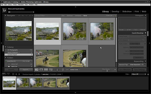 Once the import has completed, the import panel disappears and you return to the Library panel. Instead of the previous set of images that may have been visible, the Library now only shows the images that have just been imported.
