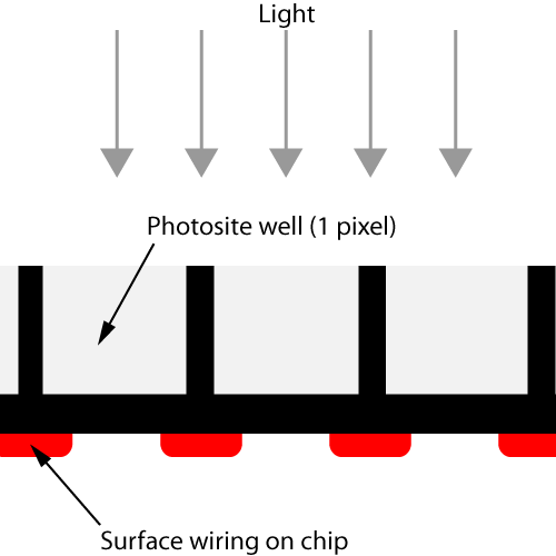 photosite wells are no longer limited by the encroachment of the circuit wiring. With a larger volume