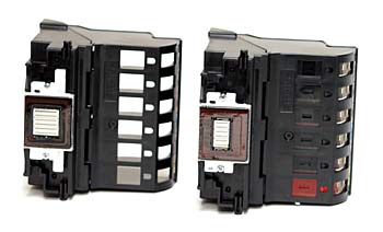 All credit to the S900’s print head?Until recently mutually exclusive, the Canon S900 is a photo ink-jet printer built for speed as well as print quality. Much of these abilities are down to one important asset, the print head. With a record 3072 nozzles, the S900 has the widest print head in its class. That much width enables it to cover significantly more paper during each print pass. Like the S800 before it, droplet sizes are as small as 4 picolitres and maximum print resolution is 2400dpi. Below you can see a comparison between the print head of the S900 and the S800: