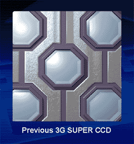 But the big difference with the SR-series Super CCD is that each octagonal sensor site now has two photodiodes instead of one. One is analogous to the speaker woofer and the other, the tweeter.