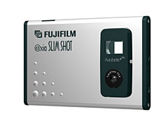 By the look of things, digicams are getting anorexic, if the new Fujifilm Axia SlimShot is anything to go by. It’s officially the thinnest camera in the world according to the Guinness Book of Records. However, this is no competitor to Minolta’s technically sophisticated supermodel, the Dimage X (click here), as the SlimShot is a non-(optical)-zooming, relatively low resolution (640x480 VGA) snap-shooter that doubles as a Webcam. But Fujifilm points out that the SlimShot is ideal for email photos and Web illustrations. It also has a long life rechargeable battery and 8MB of internal memory which is good for 26 VGA or 104 QVGA images. To read the official Fujifilm press release, click here. | |||