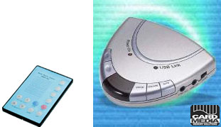 This 81g unit, 95 x 89 x 15 cm in size, has on-board playback controls and a credit card-sized remote control. There is a switchable NTSC/PAL video out port for connection to a TV or video recorder and there is USB 1.1 support for connection to a PC is provided for basic memory card reader functions. Compact Flash (CF) and SD/MMC memory cards are supported, but SmartMedia and Sony Memory Stick users will have to buy an optional CF adapter. There are two things that we have noticed about the Card Media Viewer’s capabilities; it can only display JPEG images smaller than 640x480 pixels and although the device looks small and portable, it’s mains powered only. A more sophisticated version with built in hard disk drive is in the pipeline. The Card Media Viewer is priced £149.90, inc.VAT or US$189 (excluding VAT). You can buy one from the Cardmedia site from the end of the month. | |||