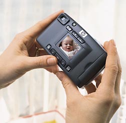 Some 2 megapixel cameras still cost over £300. The new HP Photosmart 320 has a provisional Euro price tag of €249 and we estimate the UK price should be under £200 inc.VAT. However, cost cutting is evident with the 320. The lens is a non-zooming optic and there is no built in lens protection. No removable memory card is supplied, though 8MB of internal memory is featured and a SD memory card slot is provided. Like its more expensive 812 and 720 siblings, the Photosmart 320 enables the user to assign email addresses to selected pictures before they are transferred to a host PC. These photos can then be automatically emailed to their chosen recipients. Again, the standard £59 Photosmart 8881 docking station is an option for the 320 and is supplied with a set of four AA NiMH rechargeable batteries.