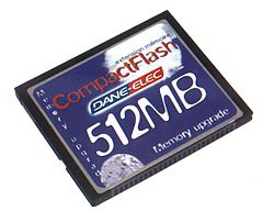 Yesterday it was Kingston Technology (click here) and today it’s Dane-Elec’s turn to announce a 512MB Compact Flash card. The Dane-Elec product is based on CF technology from partner, Lexar. No price was mentioned in the release (apparently there is too much price volatility to quote one at present), but the news demonstrates that there is increasing momentum in the industry to deliver larger capacity flash memory devices.
