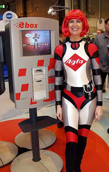 One of the more striking stands features product demonstrators for Agfa’s kiosk station mini labs, already being trialled at some selected Safeway supermarkets. These photo input stations can deal with practically any digital medium and allow you to choose the size and type of print required via a touch screen interface. Once selected, the print is output to the mini lab, which could be some distance from the kiosk.