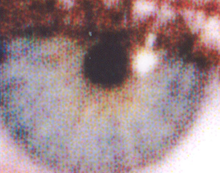 Below are some magnified close-ups, in colour, from the new 2100 and also the dye-based 950 A4 model also announced by Epson, plus Canon’s S900 dye-based contender. It must be stressed that we aren’t able to compare like for like as we haven’t been able to produce our own test prints on our own 2100, but it’s an interesting enough exercise nonetheless. Has Epson fixed the problems previously endured with pigment ink? Normal viewingBefore we look at the magnified views, it has to be said that viewed in the hand the colour sample print on semigloss paper looked very good. Colours are vibrant, there is little to reveal that it’s a digital print. My only word of caution is that it’s a sample print and no-doubt the image was selected meticulously to show off the best of the printer. All scans were made using a HP 7450 2400x2400ppi flat bed scanner. Directly below is a thumb nail of our test print model’s right eye close up: | ||||||||||