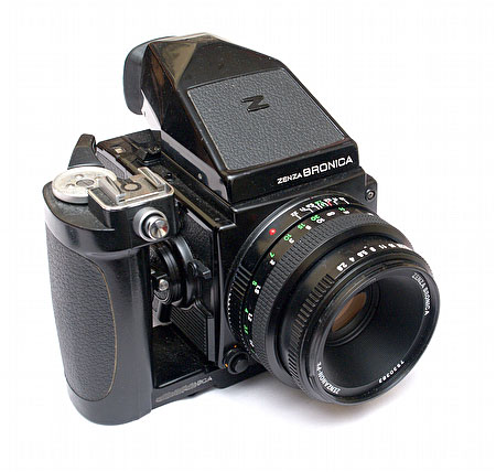 The first Zenza Bronica, a 2¼ square inch format roll film SLR might be regarded as a Japanese copy of a Hasselblad, but it featured a number of desirable improvements, including an automatic mirror return and aperture reset after each exposure. The mirror mechanism was also novel in its action.