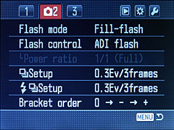 Flash and exposure menus