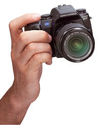 Nine months ago, many were lamenting a lengthy wait for Konica Minolta's debut DSLR. Today, Konica Minolta unveils the Dynax 5D (Maxxum 5D in the US and some other regions). This is the follow-up to Konica Minolta's first DSLR, the 7D. Priced in line with other budget DSLRs, the 5D also marks Konica Minolta's entry into the booming budget-priced DSLR sector, competing with the likes of Nikon's new D50, Canon's formidable EOS-350D, the radical Olympus E-300 and the compact Pentax *istDS.