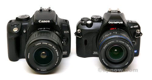 One of the smallest DSLRs on the market until the E-400 arrived was the Canon EOS-350D. Its body is almost identical in size and shape to the just-launched EOS-400D, with which the Olympus E-400 will undoubtedly have to compete against.