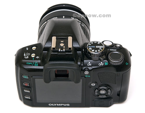 Tilt the E-40 up and the reduced real estate does result in some cramming of controls onto the top-plate, but it's not an issue when in use.