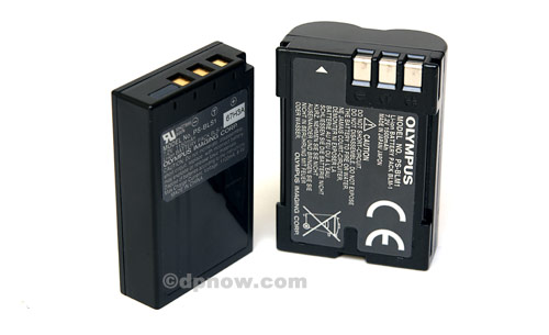The new style battery is on the left and the tubbier BLM1 part used in all the other E-Series model is on the right.