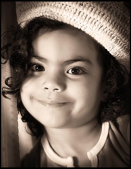 Today, our featured photographer on the DPNow Picture of the Day is registered on the DPNow forum and galleries as Noor. Unfortunately, I know very little about Noor apart from the fact that he or she has produced a marvelous portrait, which has been chosen for our POTD. The girl's expression can be interpreted in a number of ways, but my personal favourite is "Oh no, not ANOTHER photo!" Not only is the girl's face delightfully expressive, but the warm toned mono reproduction and apparent vignetting has worked really well. Noor - if you read this, please get in touch so we can learn more about you and your picture here.
