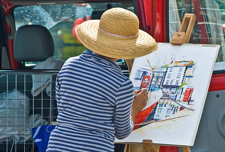 Gez - is our featured photographer on the DPNow Picture of the Day this Tuesday. It so happens that here in Hemel Hempstead we are enjoying at least one day of an 'Indian Summer' and Gez's picture is definitely a reminder of summer. This picture was nominated by one of the pillars of the DPNow forum and gallery community, Pol: "I'd like to recommend Gez's 'Artist in a Hat' picture for POTD. I gather he took the picture in Brixham on August Bank holiday Monday. Apparently the place was packed with visitors and tourists but the artist just carried on with her work.So very well spotted and well executed imo. Clear detail, beautiful colours and a nice example of one person, oblivious of the crowds, just carrying on doing what she enjoys." I couldn't agree more. It's also a fresh and vibrant image. Well done Gez!