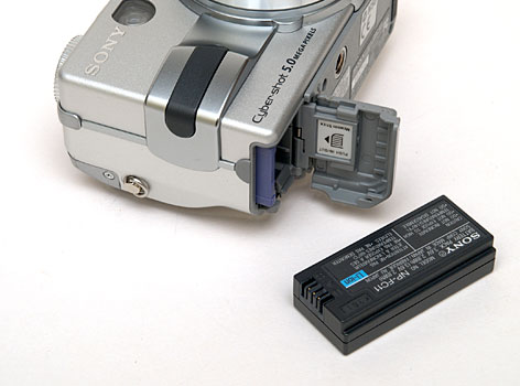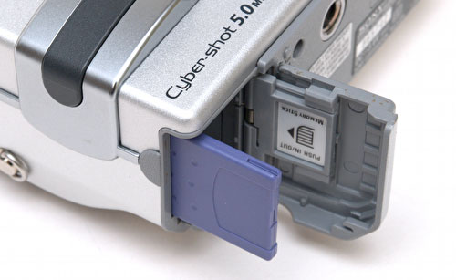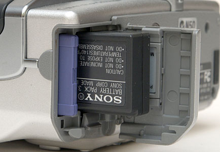 Sharing the same compartment is the V1's Sony Memory Stick card slot. Like all the latest Sony's, the V1 is compatible with both 1st-generation Memory Sticks and the latest faster and higher-capacity Sony Memory Stick Pro cards.