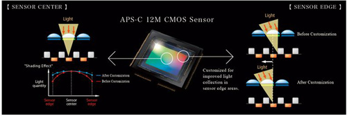 - Optimization of the angle-of-incidence in conjunction with the specially developed lens maximizes light gathering efficiency extending to the perimeter of the sensor for a sharper image with exceptional clarity.