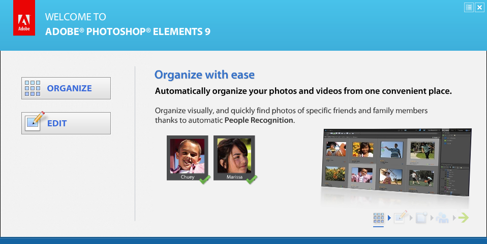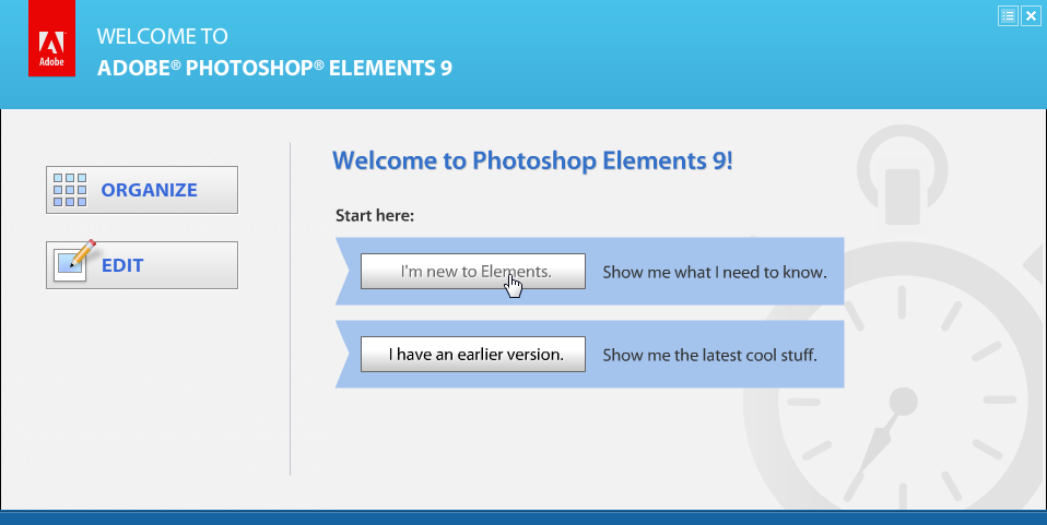As we have already seen, when you start PSE9 you get the choice of opening the Organizer or the Editor.