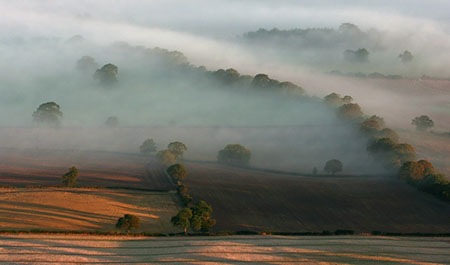 stan1968 has produced a real work of art with this picture. In fact it does remind me of a carefully crafted painting. I just love the warm tones of a low sun in the forground and to the left, while er have a cool mist dominating the rest of the frame, partially hiding a network of tree tops. It's simply beautiful.
