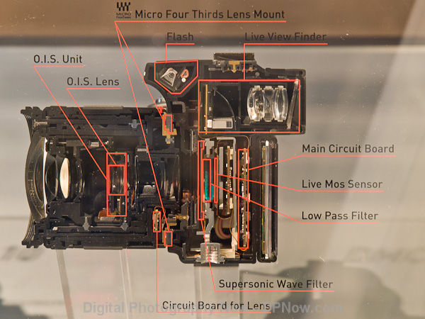 A cut-away showing the inside of a modern DSLR