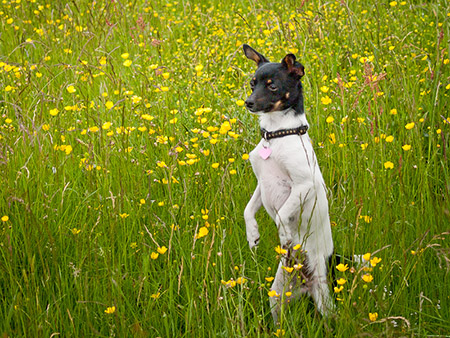 She loves to run through the long grass but sometimes loses sight of me or my other dog so she has to do her Meerkat impression to see above the grass.