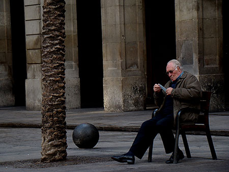 bruno.borges is the photographer responsible for Picture of the Day this Wednesday. This one is from 2008 and shows an elderly man sitting in a chair reading something in a square. He is an interesting figure, wearing sunglasses and one immediately wonders what he's reading and thinking. His expression gives nothing away. And there is the large ball, which appears to be metal in between the man and the palm tree trunk - triggering more questions. Bruno did not include any notes with his picture and so we are left wondering again - where is this place? I also like the strong definition in this shot. The scene is in shade and yet the face of the man is very clearly defined. The exposure is, in my opinion, spot on and focused well. This is an intriguing shot.