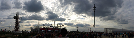 al_kaholik (Alex) continues our London 2012 Paralympic Games theme from yesterday with this super cylindrical panorama of the London 2012 Olympic Park, including the main stadium, the ArcelorMittal tower on the left and the Water Polo Arena on the right. The rather angry sky matches the semi-silhouette of the park structures nicely. Alex explains: "The panos were done using Hugin pano stitcher under Ubuntu (Linux operating system). The whole process takes a couple of minutes for the full size images under 64bit with a 1.8GHz dual core laptop with shared video resource and 3GB RAM - thought it was pretty impressive. It'll also work RAW and is available for the Windows community." Alex has posted several additional Paralympics shots to our Paralympics forum thread, including a clever three shot combination showing one of the long-jumpers in three stages of his jump.