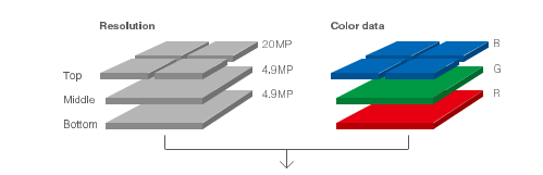 Maintaining the same exacting standard of image quality while increasing megapixels and enhancing noise characteristics, this 1:1:4 solution was the inspiration for the name of the current generation of Foveon sensor: "Quattro."