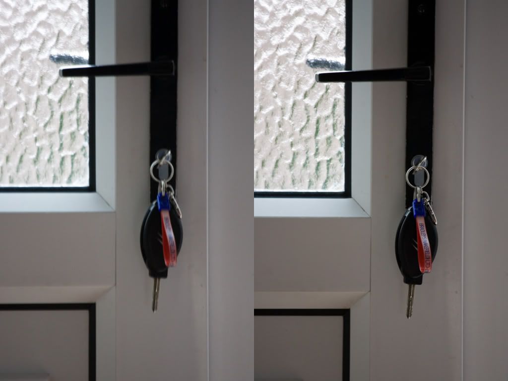 I've just taken the first two photos with my new Canon 100-400 IS lens. I had put the Kenko UV filter on that came with the lens and thought things looked a bit soft through the viewfinder. So sat at my desk and focusing on the front door (why walk any distance eh