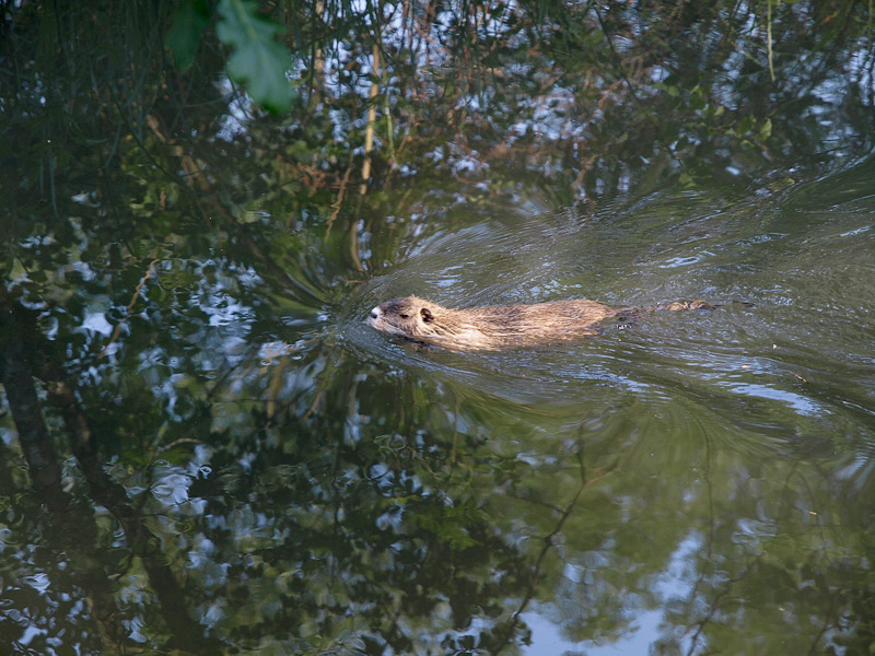 I like both versions, although I prefer Ian's edit which gives a real sense of the forward motion of the animal as the ripples are now clearer. Scrolling down across the picture, I might be tempted to crop the top to the bottom of that stray out of focus leaf which would concentrate the attention even more on the animal, those ripples and reflections.carolannphotos.smugmug.com / webleedmusicmedia.com