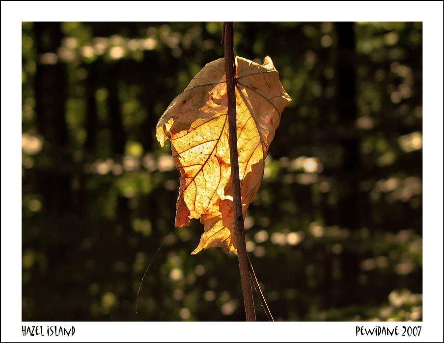 hiking in the dark woods on Hazel island this leaf ligting up as a candle.