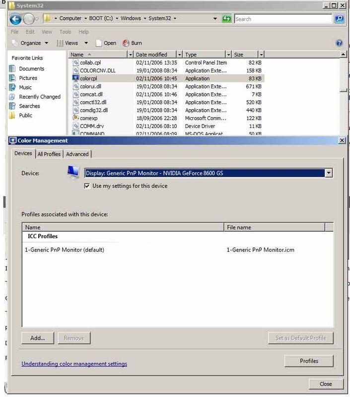 It is "Generic PnP Monitor" which is the name my Spyder 2 gave it and I didn't change it.Apart from that I don't have any Vista or Epson profiles that I am aware of. I have not recently had any paper profiled.