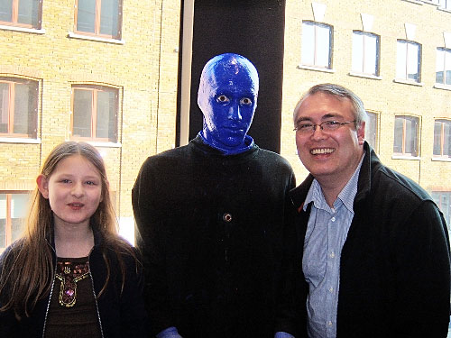 Went to see the Blue Man Group matinee performance in London today. Here is a tip for you - bring your camera with you rather than check it in to the cloakroom as they have a brief photo opportunity after the performance. There was a window to the right of the frame, but I have cloned that out. This was taken with a Kodak V803 compact which is on loan for review, while my DSLR and lenses were in my bag - in the cloakroom!