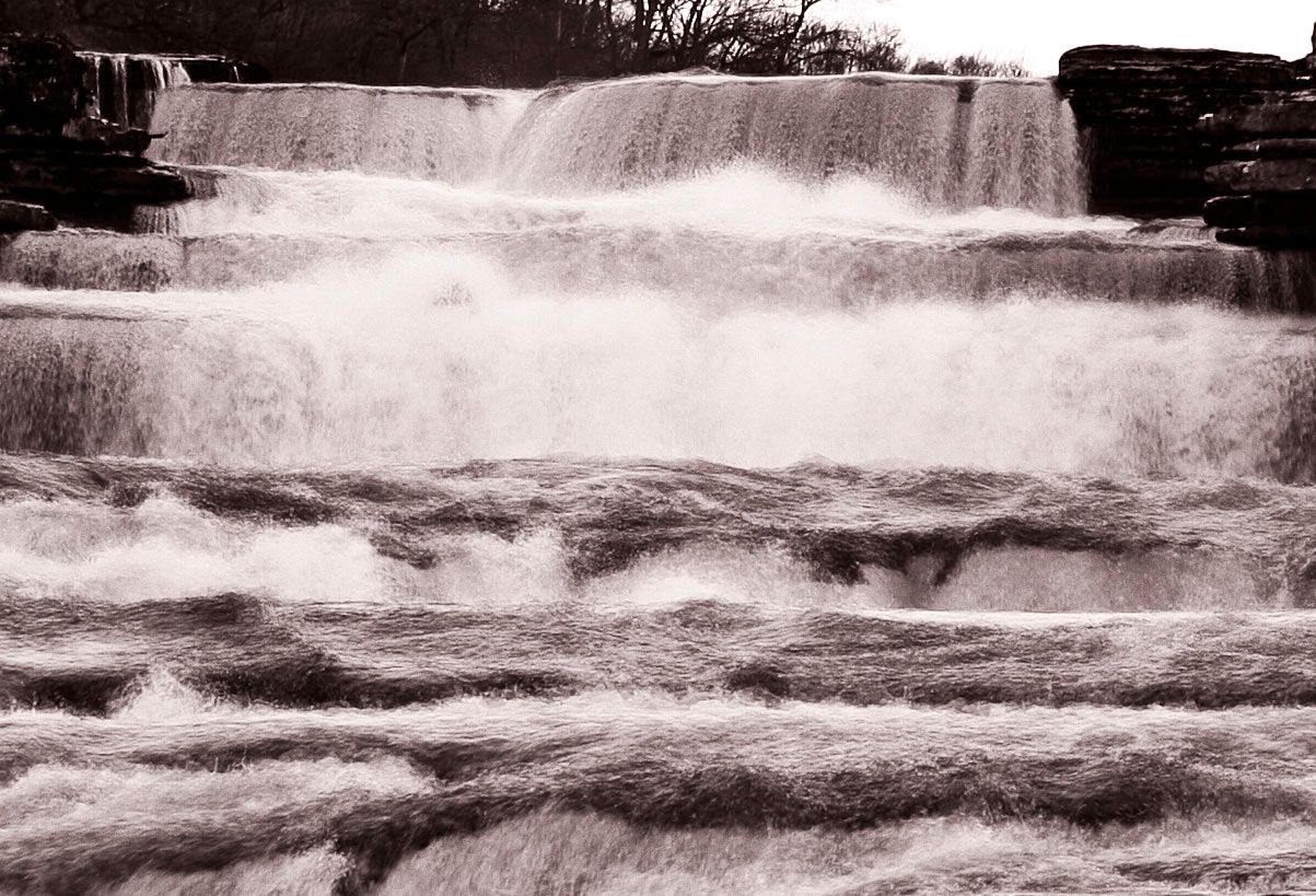 It seemed to me that as the water fell there was little pattern and infact the water seemed to be in total chaos. Each individual exposure during the sequence is different. However, in the image below there are 10 exposures blended together by stacking them one on top of the other then altering the opacity on each layer.