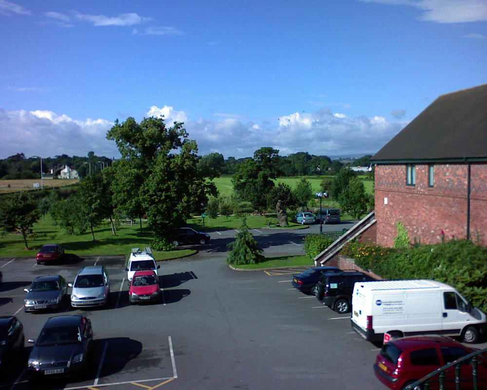 I took this picture along with others while on a short break in Chester/England and discovered something strange on the top right in the clouds could anyone help explain what it is .