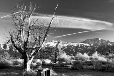 Here is a fine monochrome landscape in the California desert that has been given the infra red treatment.