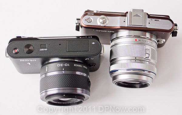 The V1 model does have conventional focal plane shutter, as well as a 1.44 milliion dot integrated electronic viewfinder. I'd have to say that despite the smaller than average sensor (2.7x cropping factor) the cameras and lenses are not quite as small as I had expected. The V1 is also seems quite solid and heavy when you pick it up. It does feel extremely well made, though.