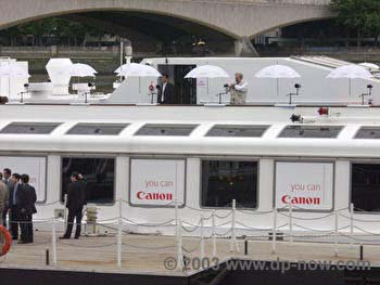Here you can see the upper deck where parasols indicate where cameras were available for hands-on evaluation. The recent hot summer sunshine we have been enduring in London was replaced by overcast conditions on the day, but at least the parasols weren't needed to protect us from rain!