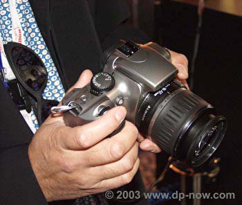 The EOS-300D is not a particularly compact camera, though it is slightly less tall than an EOS-10D, for example. Prosumer fixed lens cameras like the Nikon CoolPix 5700 and Minolta Dimage 7/A1 are significantly smaller and lighter compared to the 300D plus lens. The 300D's finish is a rather garish silver plastic. A black edition must surely be on Canon's roadmap?